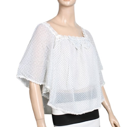 - White Lace Neck and Cuff, Half Bat Wing Sleeve, Small Dots, Bowtie Decor Front Detail, White Lining, Loose Chiffon Shirt. The model in our picture is about 5.3 Ft tall. Ladies Blouse ONLY, other accessories photographed not included. Please check your measurements to make sure the item fits before ordering.