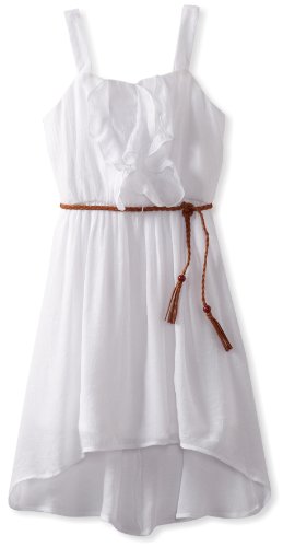 Amy Byer Girls 7-16 Ruffle Shirred Hi Low Dress, White, 10