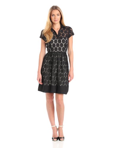 Julian Taylor Women's Eyelet Fit And Flare Dress, Black, 6 Missy